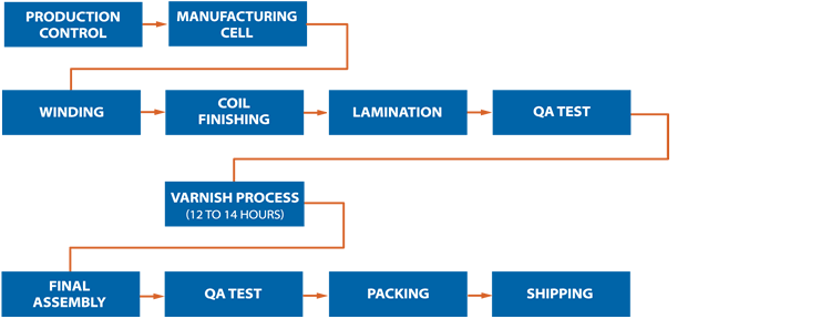 - Vacuum impregnation varnish system, utilizing UL recognized environmentally safe insulating resin (which also reduces noise, and heat)